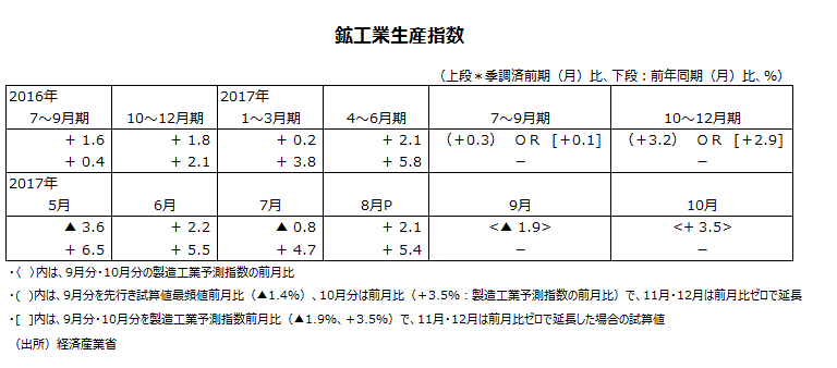 2017年8月分鉱工業生産指数・速報値について