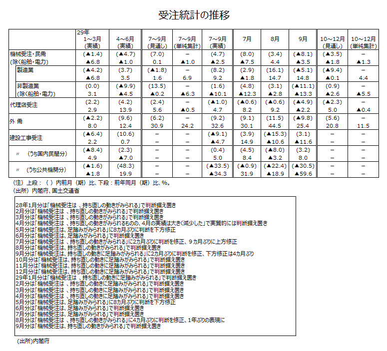 2017年9月分機械受注