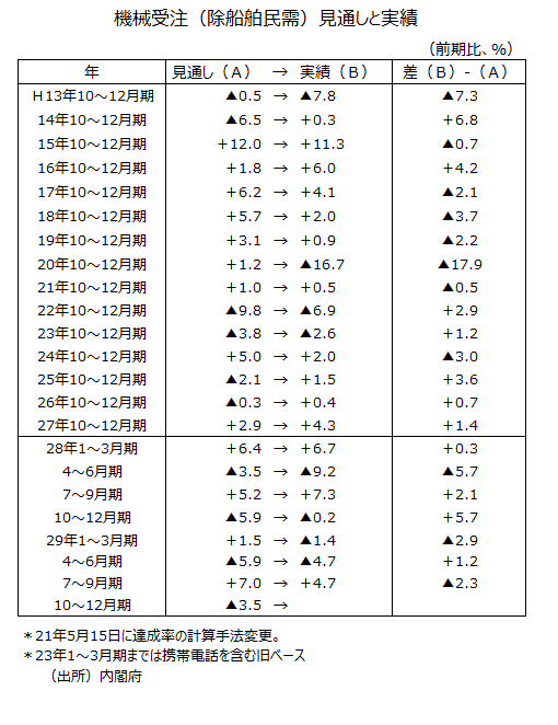 ―機械受注(除船電民需)11・12月各前月比▲3.8%で10~12月期見通し前期比▲3.5%達成―