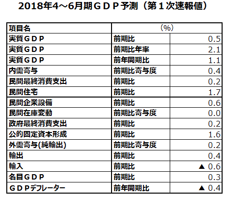 -4~6月期実質GDP第1次速報値・前期比は2四半期ぶりのプラス成長に-