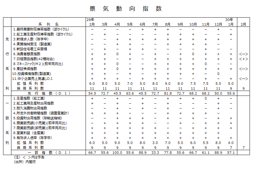 -一致CI指数水準114.0は、17年1月の113.3以来1年ぶりの低い水準-