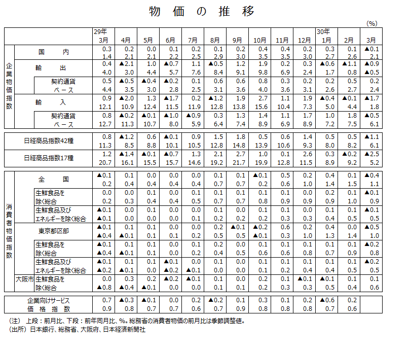 2018年3月分全国消費者物価指数について