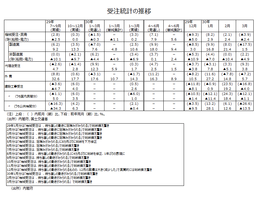 ―内閣府の基調判断は「機械受注は、持ち直しの動きがみられる」で据え置き―