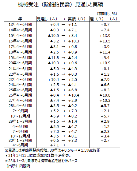 ―機械受注(除船電民需)4~6月期前期比見通し+7.1%、多少下振れても実績は増加か―