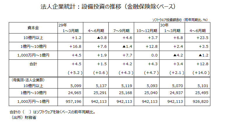 ―設備投資(除くソフトウェア)前期比+6.9%、前年同期比+14.0%―