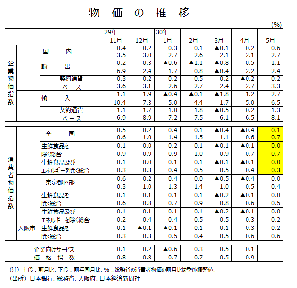 2018年5月分全国消費者物価指数について