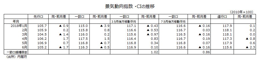 -先行CI前月差▲1.7と3カ月ぶり下降、一致CI前月差▲0.5と2カ月連続下降-