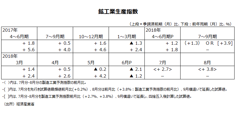2018年6月分鉱工業生産指数・速報値について