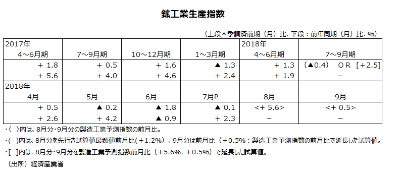 2018年7月分鉱工業生産指数・速報値について