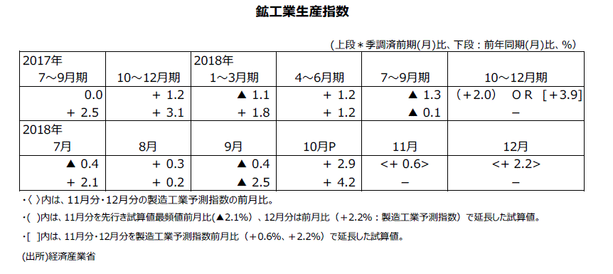 -10~12月期生産指数2四半期ぶり前期比増加の可能性を裏付ける11・12月分予測指数-