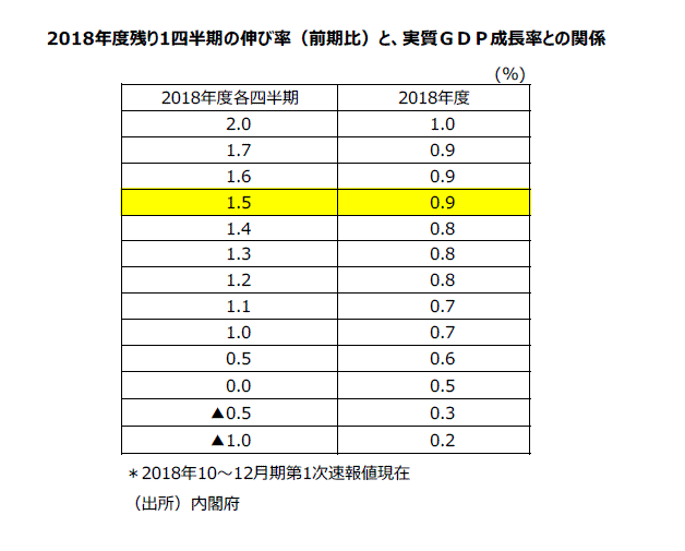 ―政府経済見通し18年度実績見込み+0.9%には、残り1四半期前期比年率