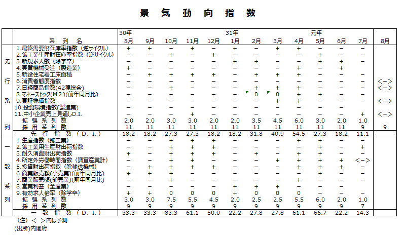 -7月の基調判断「下げ止まり」、8月一致CI前月差下降回避なら「下げ止まり」継続だが・・-