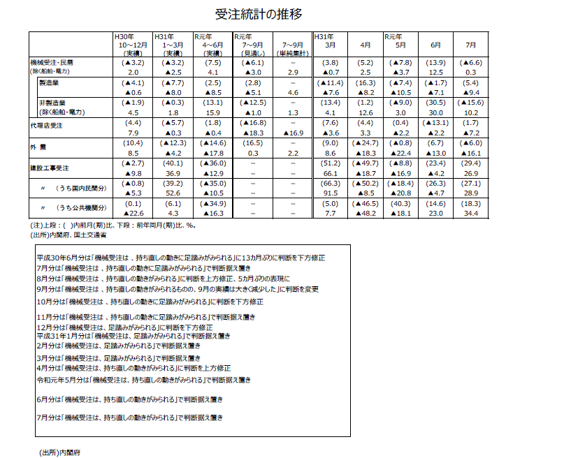 2019年7月分機械受注