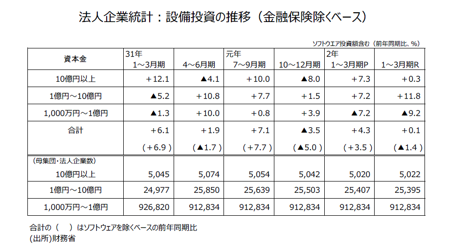 2020年1~3月期確報値・法人企業統計・設備投資などについて