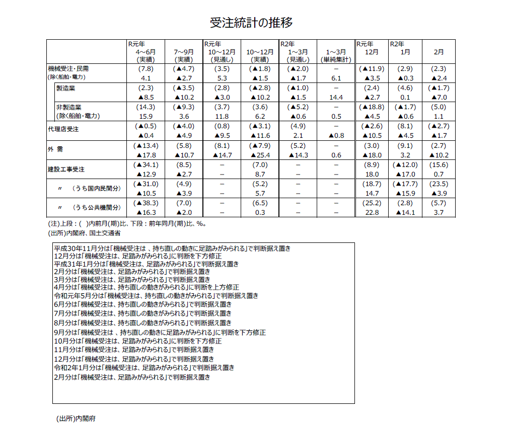 2020年2月分機械受注