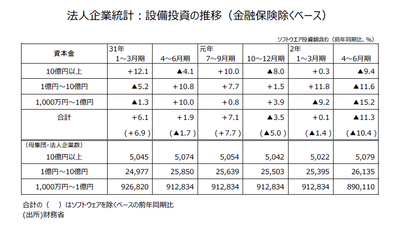 2020年4~6月期法人企業統計・設備投資などについて