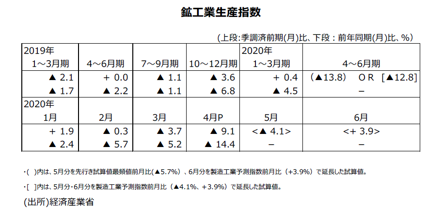 2020年4月分鉱工業生産指数・速報値について