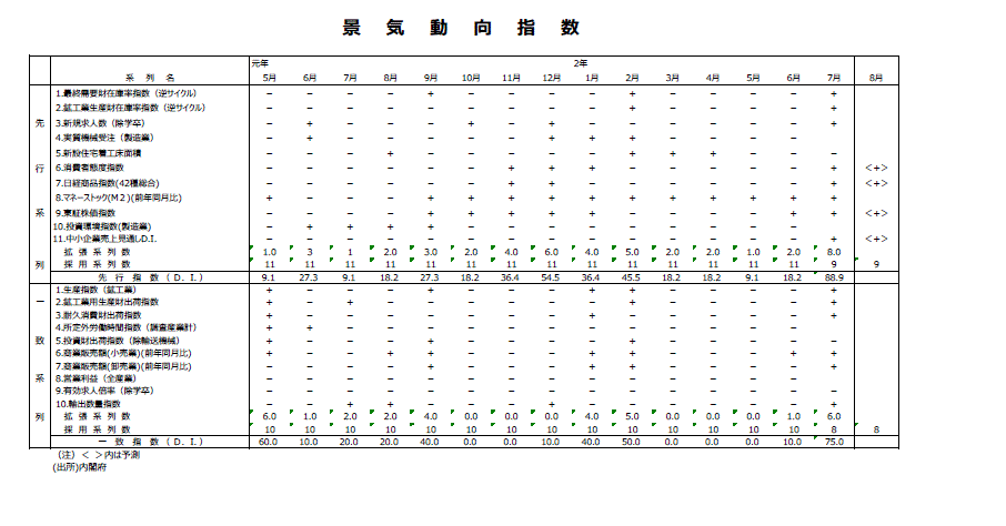 -7月分の基調判断は「悪化」、8月分で一致CIが上昇なら「下げ止まり」に-