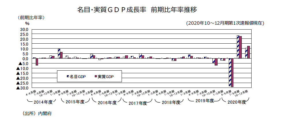 ―21年1~3月期実質GDPは個人消費、設備投資など減少でマイナス成長か―