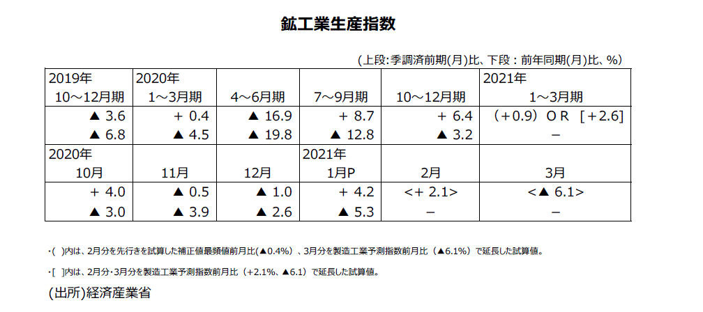 2021年1月分鉱工業生産指数・速報値について