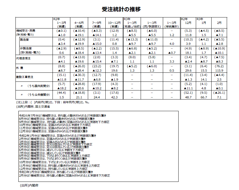 2021年2月分機械受注