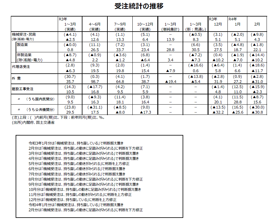 2022年2月分機械受注