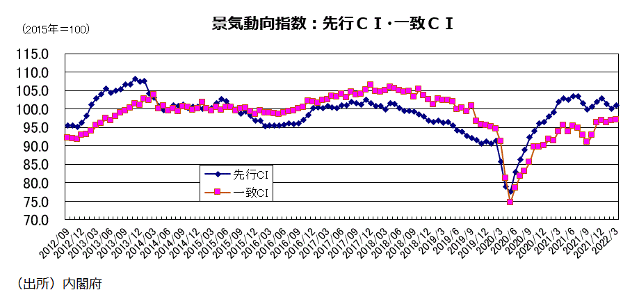 -先行CI前月差+0.9で3カ月ぶりの上昇、一致CI+0.2で2カ月連続の上昇-