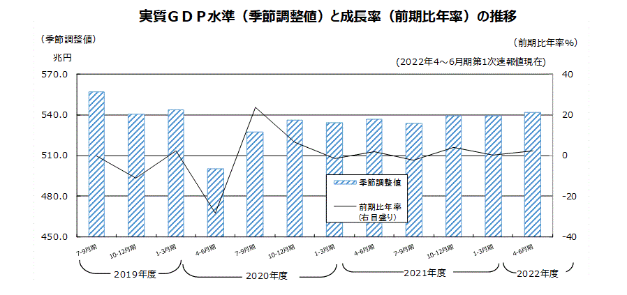 ―実質GDP542.1兆円はコロナ発生時20年1~3月期543.8兆円以来の水準―
