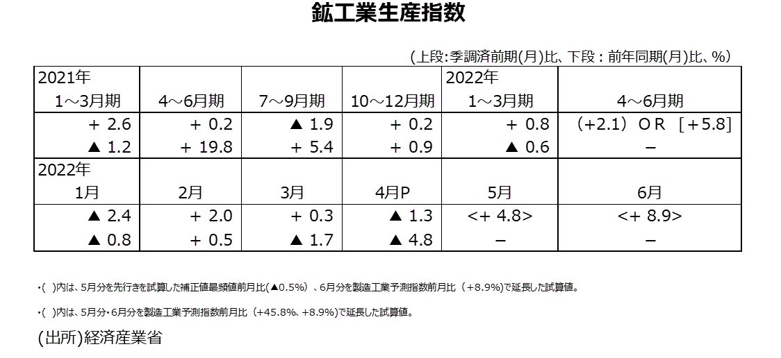 2022年4月分鉱工業生産指数・速報値について