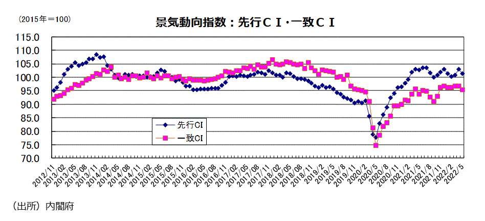 2022年5月分景気動向指数(速報値)
