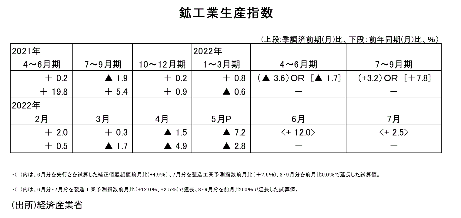 2022年5月分鉱工業生産指数・速報値について