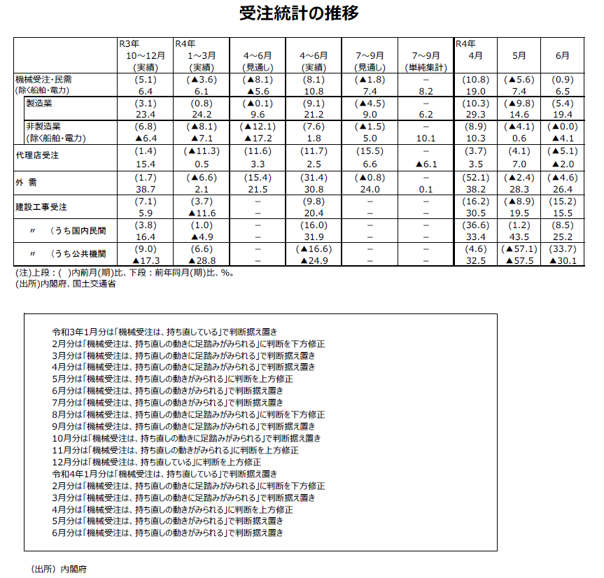2022年6月分機械受注