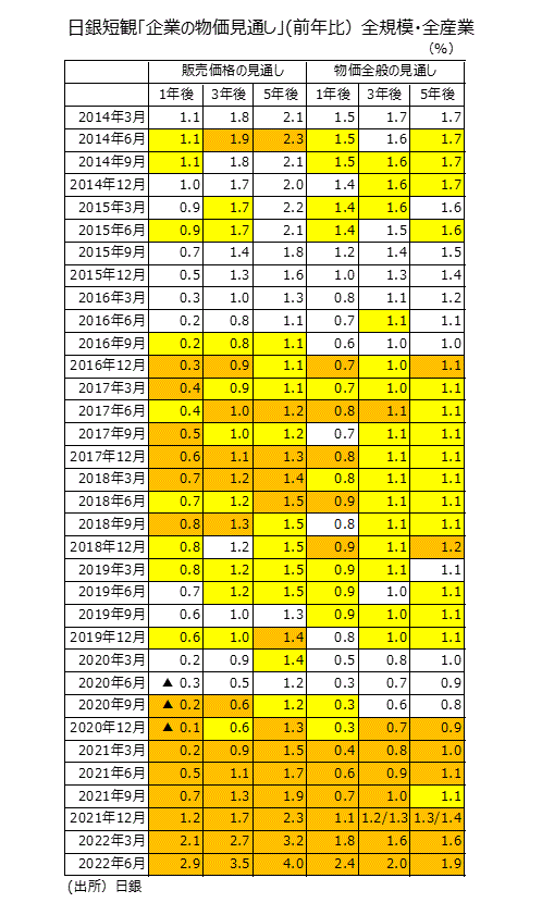 ―企業の物価見通し、全規模・全産業6項目全てで、初の3調査連続・上昇率アップ―