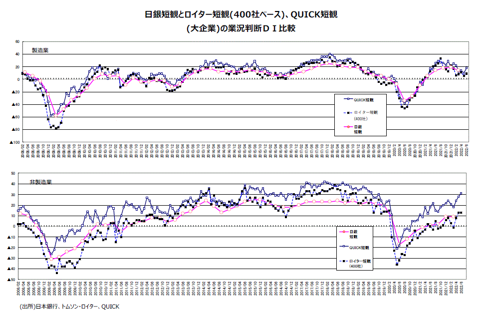 ●この予測は、日銀短観DIと連動性が高いことが知られているQUICK短観(6月調査)やロイター短観(6月調査)などを参考にした。