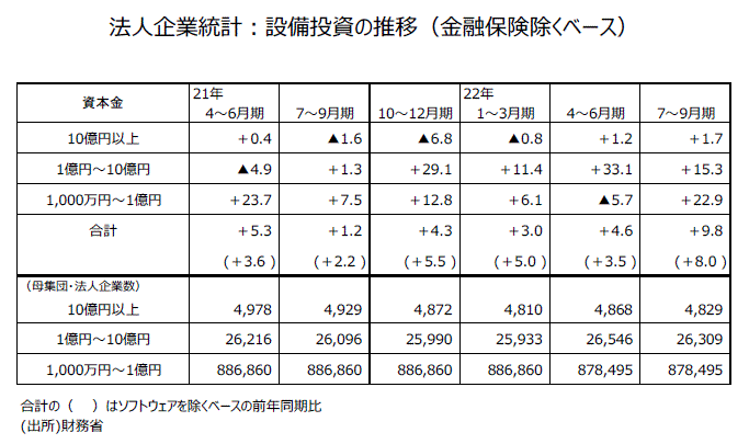 ―設備投資(除くソフトウェア)前年同期比+8.0%、4.5㌽増加率高まる―