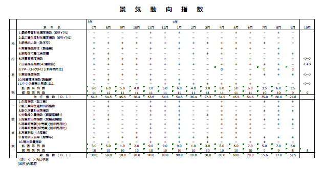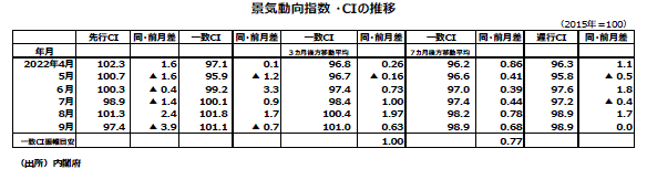 -9月分一致CI3カ月移動平均が上昇、景気判断の「改善」は8カ月連続で継続-