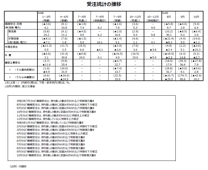 2022年10月分機械受注