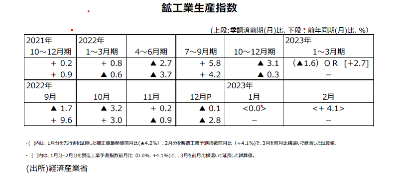 -生産は前月比▲0.1%と2カ月ぶりの低下。前年同月比は2カ月連続低下-