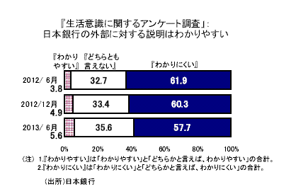 4 月4 日の金融政策決定会合で「2 年間で消費者物価指数コア前年比2%の物価目標実現のために、マネタリーベースを14 年末に2 倍に、長期国債買い入れの平均残存期間を2 倍以上に延長」する量的・質的金融緩和が実施された。アベノミクスの第一の矢である。マネタリーベースの拡大ペースや物価上昇率の目標値が米国など他の国と平仄を合わせたことで円高修正が起こり、株価が上昇した。「生活意識に関する世論調査」では日銀の政策がわかりやすくなったという意見が少し増えている。思い切って「2」という数字を印象付けたことが功を奏したようだ。なお、マネタリーベースを2 倍にするなどの金融政策に加え、高視聴率のドラマ、半沢直樹のセリフ「倍返し」、13 年度の実質経済成長率が12 年度の1.2%の2 倍強の2%台になるとの見通しなどから、今年の漢字の有力候補に「倍」の字が入ってこよう。