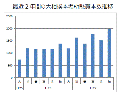 中央競馬売上(売得金)は年初から9 月27 日まで累計+3.3%とシルバーウィークで3%台まで上昇した。大相撲秋場所の懸賞は15 日間1979 本と、過去最多だった夏場所の1776 本を更新した。好調な企業収益下、広告費増も続いている。