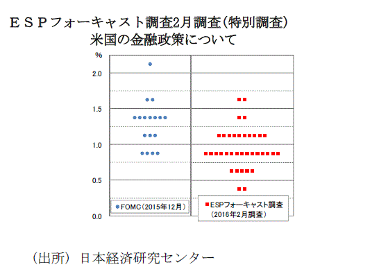 FRB利上げは16年2回のESP予測