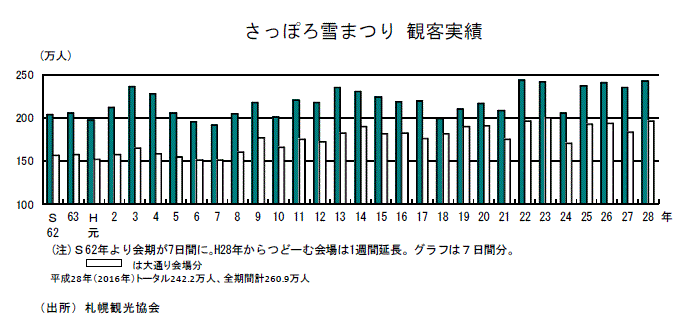 金沢兼六園入園者数の前年同月比は12月+103.2%、1月+103.8%、2月+54.4%と高い伸び率が続いている。また平成の大修理を終え、5年ぶりに天守閣の中に昨年3月27日から入場できるようになった姫路城の入城者数は3月以降1月まで前年同月比3ケタの伸び率だ。さっぽろ雪まつりは2月5日から11日の期間中に242.2万人訪れた。これは前年比+3.1%の増加で、6年前の10年の243.3万人以来の史上2番目の人数だ。