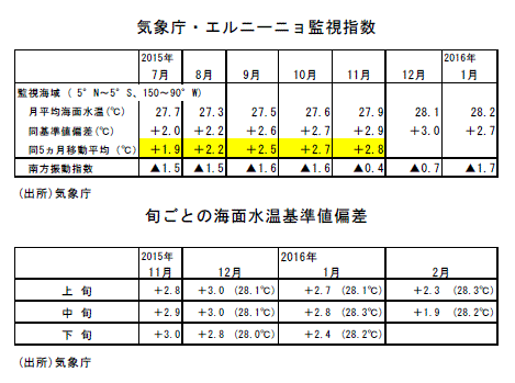 最近発表された15年10~12月期実質GDP成長率・第1次速報値は前期比年率▲1.4%とマイナス成長になった。GDPの約6割を占める個人消費が前期比▲0.8%だったことが主因だ。雇用者報酬の前期比は名目+0.4%、実質+0.2%と、2四半期連続して両方とも伸びた。所得が前期比増加となる中での消費の減少となった。実質賃金(毎月勤労統計)が伸びないことが消費の悪化要因だという見方もあるが、毎月勤労統計はサンプル替えの影響があると展望レポートなどで、日銀が指摘しているように幅を持ってみた方が良い統計である。98年以来の強いエルニーニョ現象により暖冬となり、冬物関連の消費が伸びなかった影響が大きかったようだ。GDP統計の実質個人消費に近い考え方で算出されている消費総合指数の10~12月期の前期比は▲0.8%、同(月次)の前月比は10月0.0%、11月▲1.1%、12月+0.1%であり、気温の高かった11月で悪化したことがわかる。