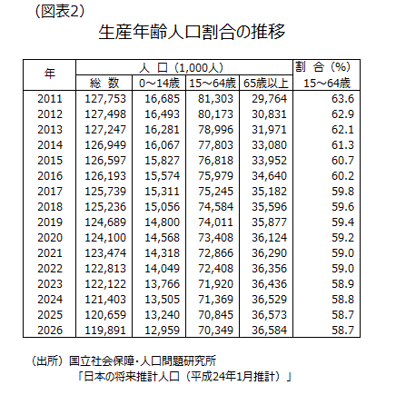 (生産年齢人口比率の急減局面にあることが、全体の個人消費の頭打ち材料か)
