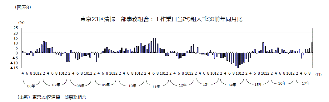 (東京23区の粗大ゴミの前年同月比6年ぶりの高い伸び率に、買い替え需要の動きの萌芽か)