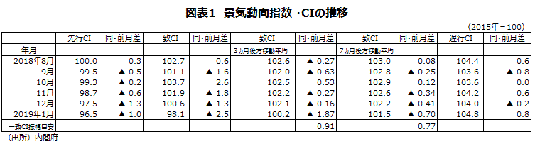 政府は「月例経済報告」での景気の総括判断を「景気は、このところ輸出や生産の一部に弱さもみられるが、緩やかに回復している」と2016年3月以来3年ぶりに引き下げた。しかし、個人消費などの内需は堅調であることから、「緩やかに回復している」としてきた判断はそのまま維持されている。