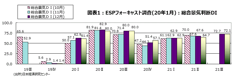 (ESPフォーキャスト総合景気判断DI20年10~12月期は1月調査で57.1に上昇。「オリンピックの崖」は回避か)