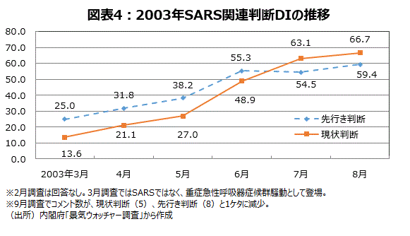 (懸念される新型コロナウイルスの感染拡大。2003年SARS関連現状判断DIの厳しい局面は3カ月程度だったが)