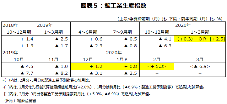 (年末頃から出ていた鉱工業生産の持ち直し基調に、水をかけた新型コロナウイルス感染拡大)