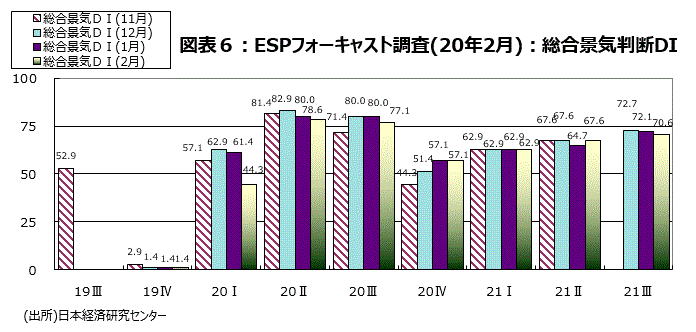 (2月「ESPフォーキャスト調査」、20年1~3月期総合景気判断DIは、1月までと一転、景気判断分岐点50割れに)